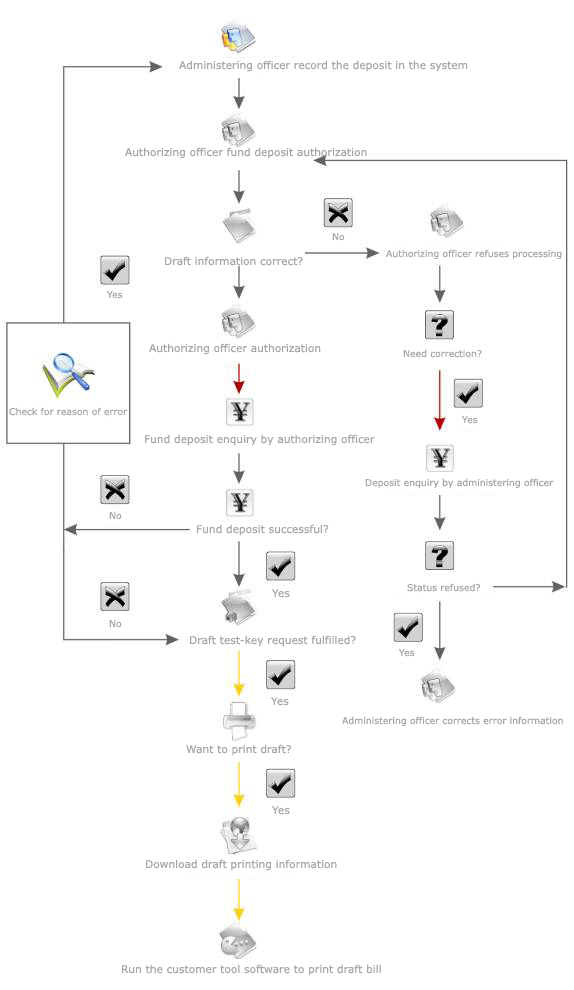(1) Online Agency Writing of Bank Draft: ICBC Online Agency Writing of Bank Draft provides the draft fund deposit information key entry, instruction enquiry, draft test-key request, and draft printing. The peer bank logs onto ICBC Internet Banking system and inputs the information of draft writing, deposit the draft fund into ICBC, and through online test-key request, download draft printing information, and then print the draft bill through the client terminal software tools provided by ICBC.